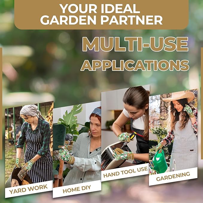 • Womens Floral Gardening Gloves - Soft deerskin leather palm, superior abrasion and puncture resistance provides perfect protection for your hands.