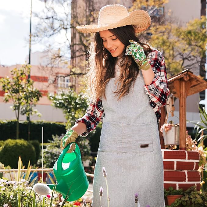 • Gardening Gloves for Women - Reinforced saddle and fingertips, provides superior wear resistance and durability. Thick deerskin palm, protect your palm from cuts and scrathches.