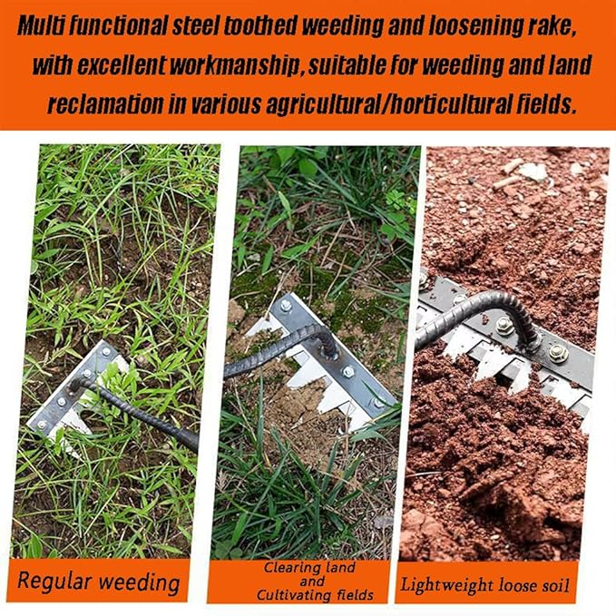- Efficient Weed Removal :Tackle stubborn weeds effortlessly in gardens, farms, or lawns with sharp manganese steel tines that penetrate soil smoothly, saving time and energy during yard work.