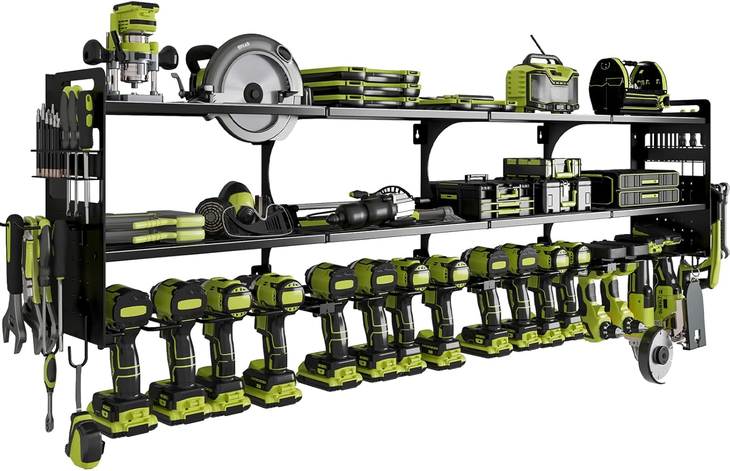 - Ample Storage Space for Power Tools: This Power Tool Organizer Wall Mount offers expansive storage, allowing you to hang up to 16 electric tools at once. Perfect for organizing drills, cordless tools, and other heavy-duty power tools, keeping your workspace clean and clutter-free