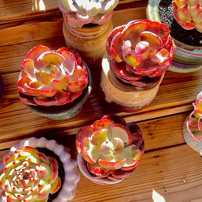 - Striking Red-Edged Foliage – This rare variegated succulent features soft, paddle-shaped leaves with creamy centers and bright red margins. A colorful standout in any plant collection.