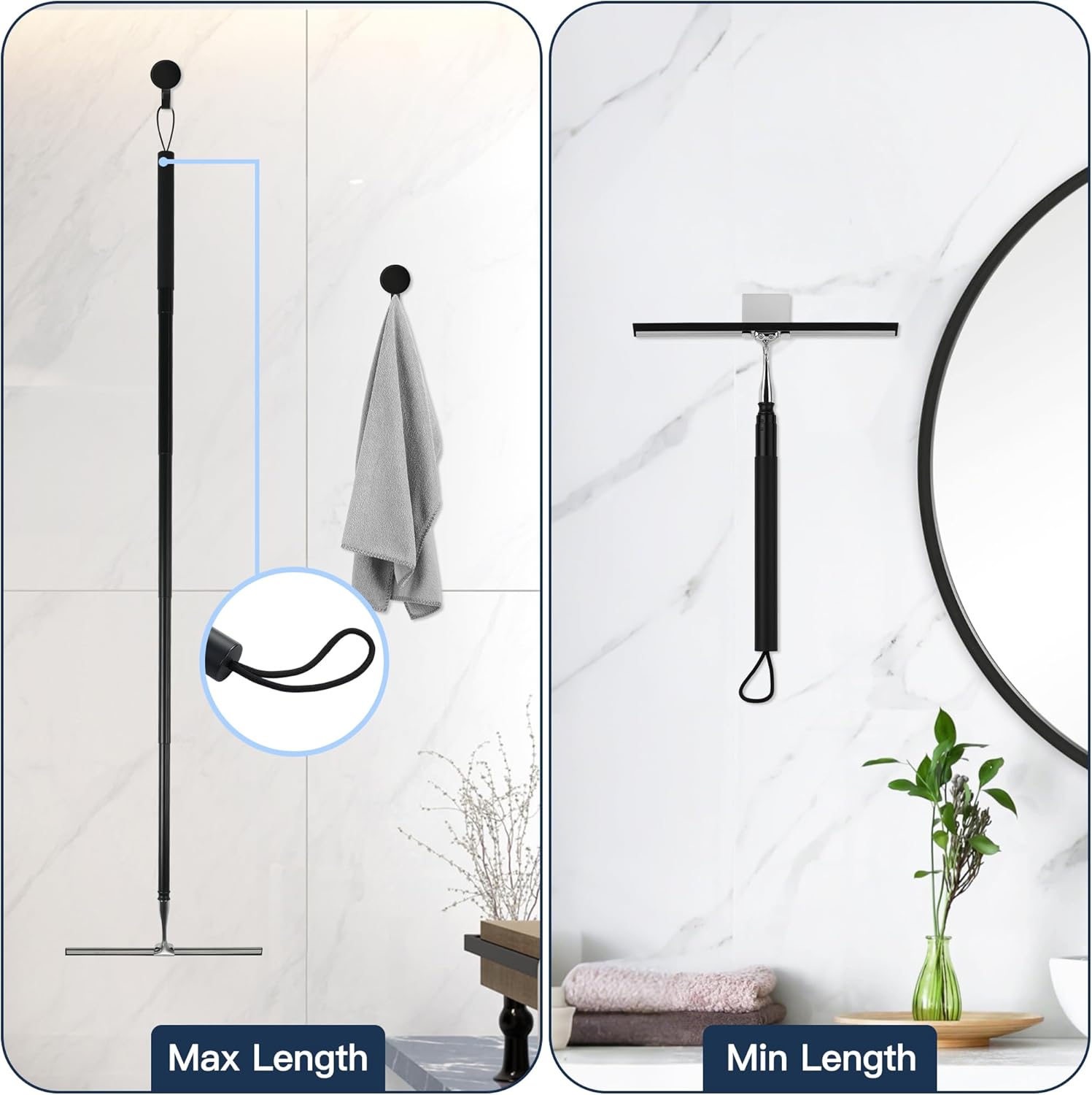 12-51’’ Telescopic Window Squeegee for Home, 2 in 1 Window Cleaning Squeegee Kit, Shower Squeegee for Glass Doors, Outdoor extendable Window Cleaner Tool for Floor Tile Wall Car Windshield