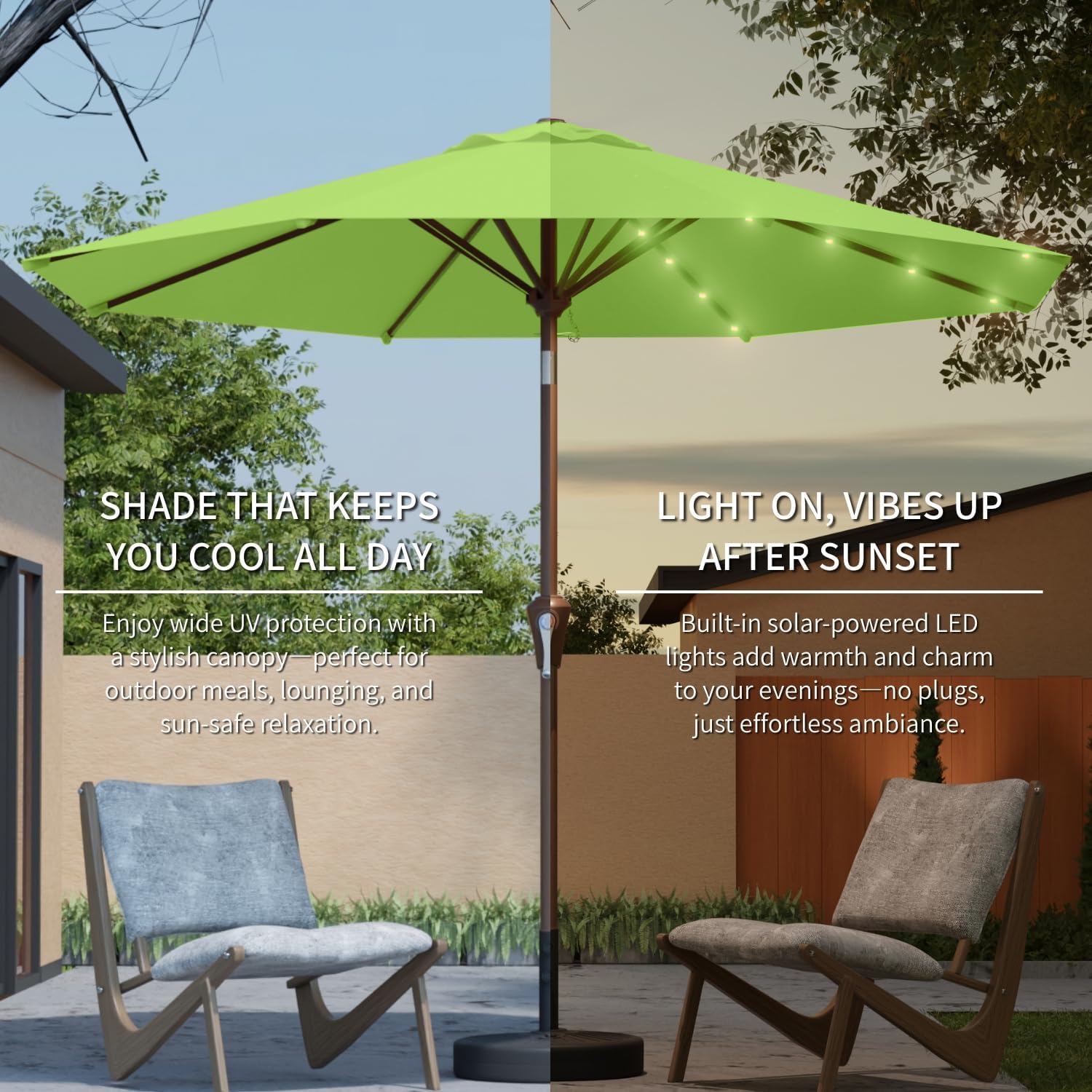 9FT Solar Umbrella 32 LED Lighted Patio Umbrella Table Market Umbrella w/Tilt and Crank, UV-Resistant Outdoor Umbrella for Pool, Garden, Deck, Apple Green