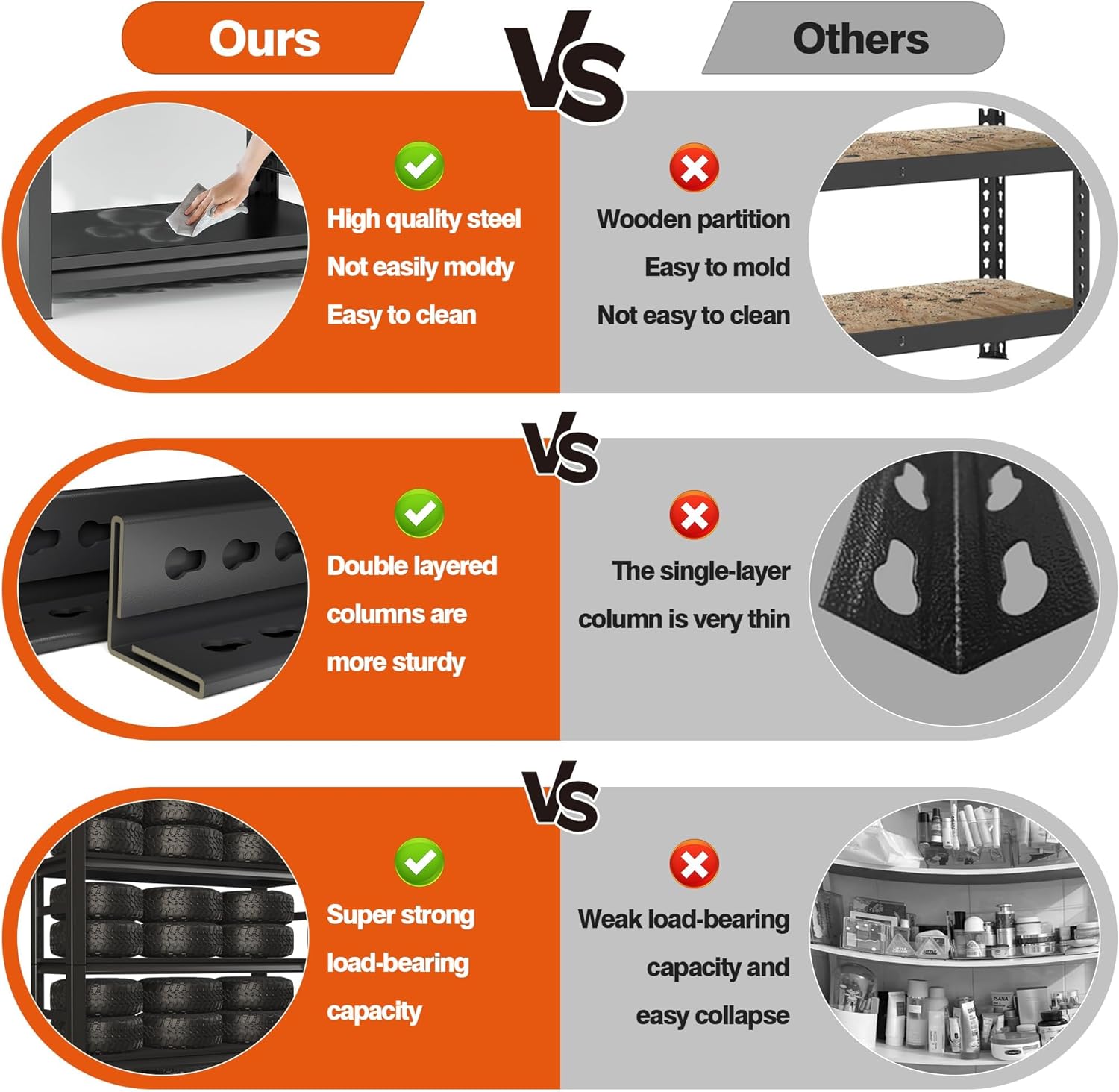 - 【Boltless Garage Shelving Assembly】 No bolts needed! Our garage shelves feature simple snap-fit assembly. Set up storage shelves in minutes – ideal for quick basement shelving or garage shelf installations.