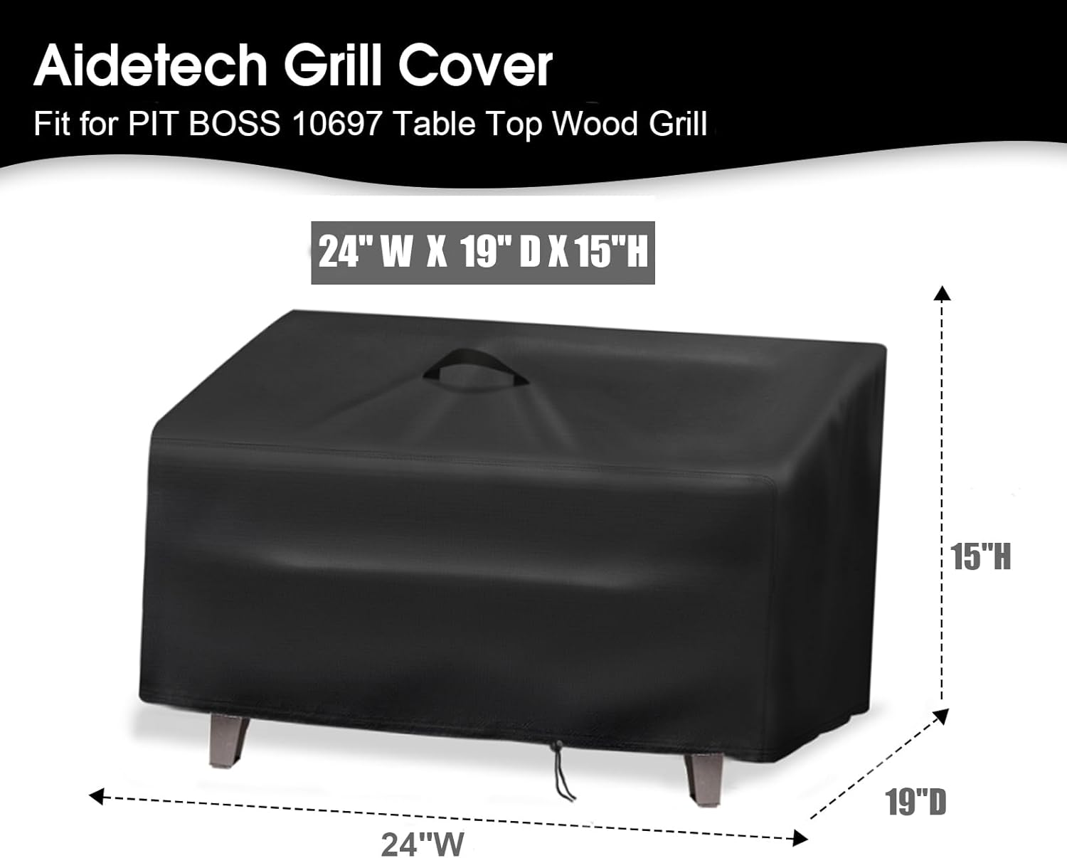 - Grill Cover Size:19"D x 24"W x 15"H. Compatible for PIT BOSS 10697 Table Top Wood Grill and other portable grills with the same size. Please double check the size of your portable smoker before buying