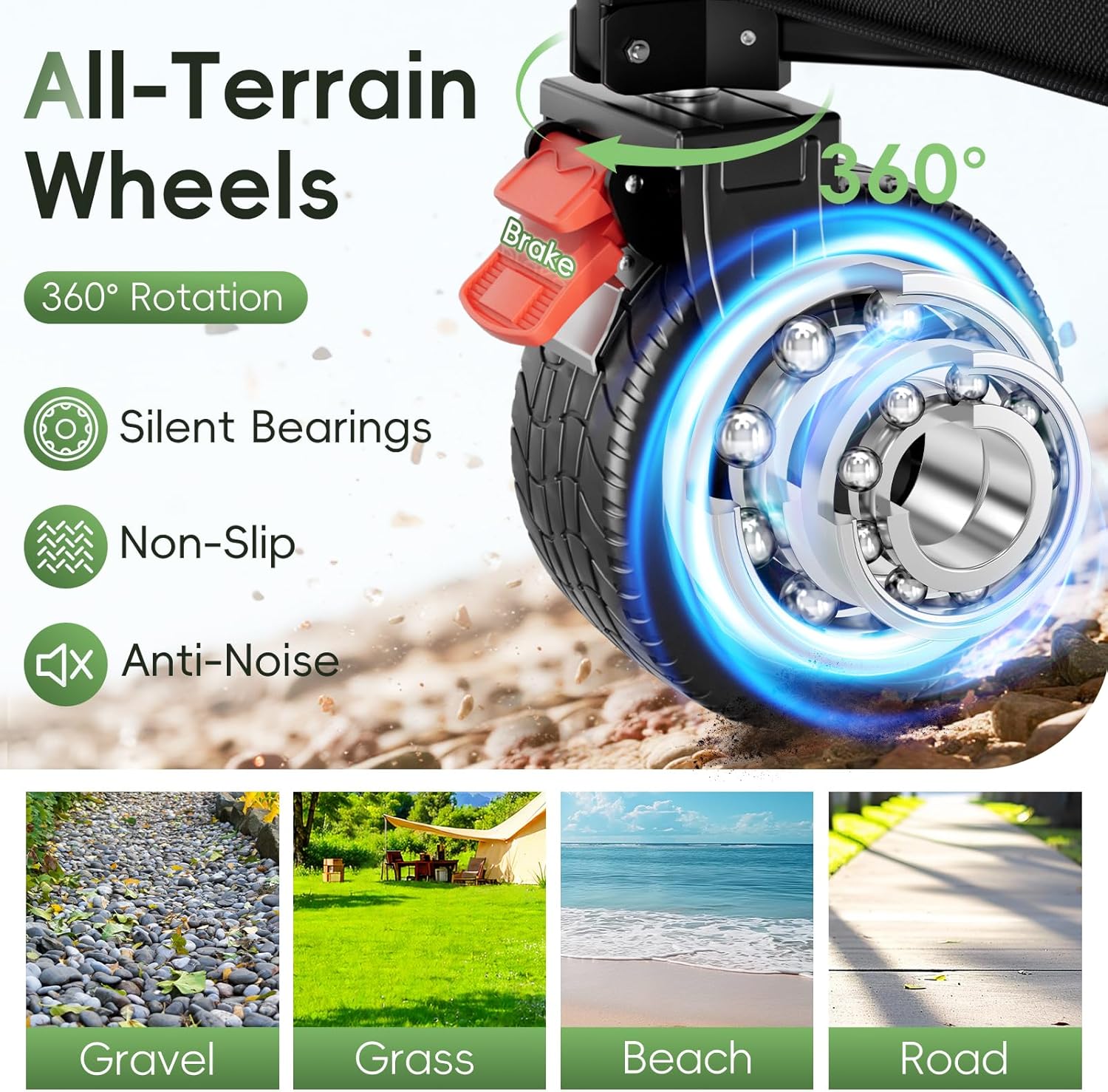 - ใ๐๐น๐น-๐ง๐ฒ๐ฟ๐ฟ๐ฎ๐ถ๐ป ๐ช๐ต๐ฒ๐ฒ๐น๐ใ:๐๐๐ฌ๐ก๐ข๐ก Utility Wagon Cart designed with ๐ฏ๐ฒ๐ฌยฐ rotating front wheels and ๐ฑ๐๐ฎ๐น-๐ฏ๐ฒ๐ฎ๐ฟ๐ถ๐ป๐ด construction, providing smooth and stable movement on ๐๐ฎ๐ป๐ฑ, ๐ด๐ฟ๐ฎ๐๐ฒ๐น, ๐ด๐ฟ๐ฎ๐๐, and other rough surfaces