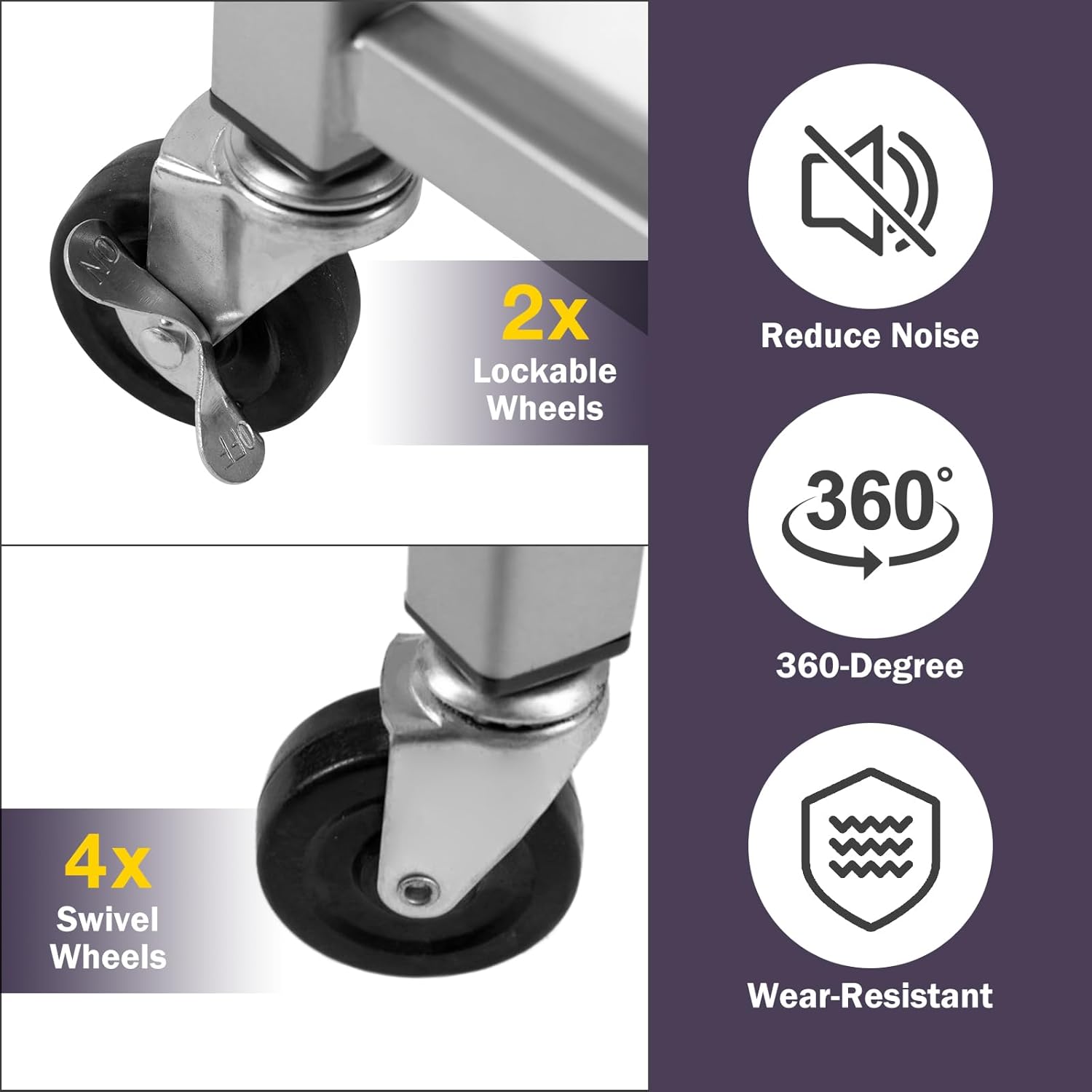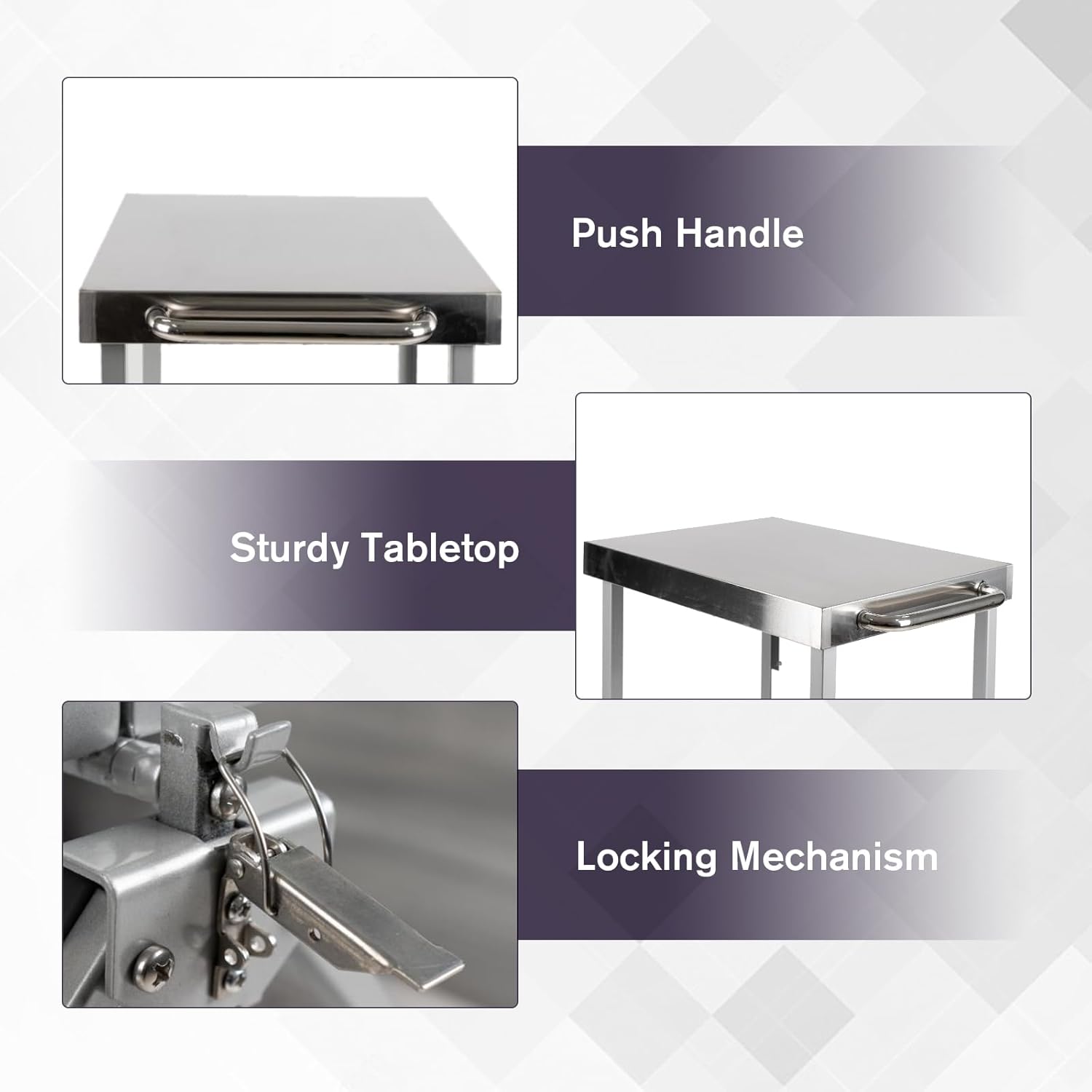 - 【Versatile Functionality for Modern Kitchens】: Transform your kitchen with a steel table cart that doubles as a prep station, storage solution, or even a mobile bar. Its multi-functional design makes it an indispensable tool for both casual and professional cooks. Whether you're hosting a party or preparing meals, this versatile kitchen cart is ready to enhance your kitchen experience.