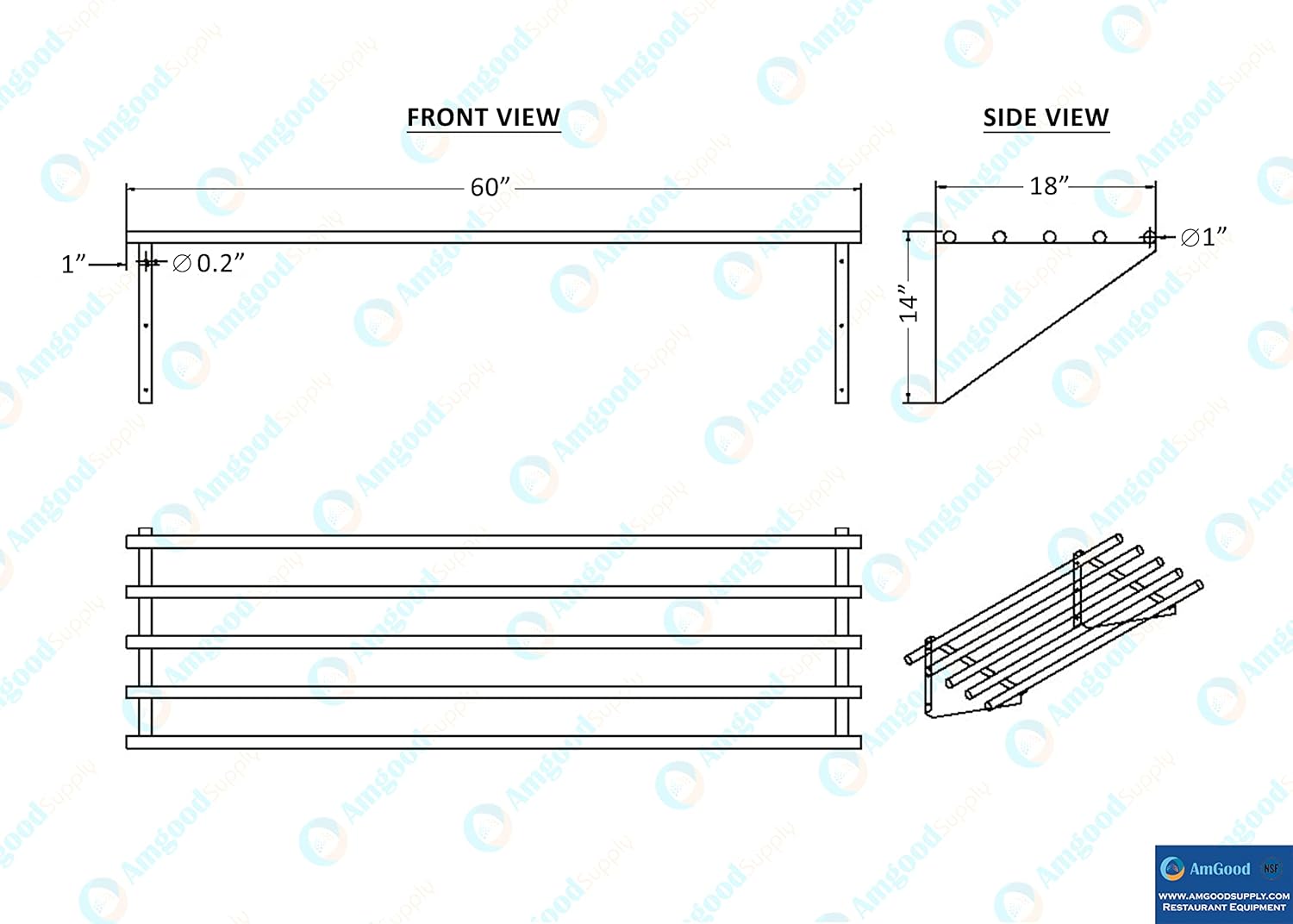 AmGood 18 in. x 60 in. NSF Stainless Steel Tubular Wall Shelf | Heavy-Duty Metal Shelving for Appliances & Equipment | Ideal for Kitchen, Restaurant, Garage, Laundry, Utility Room