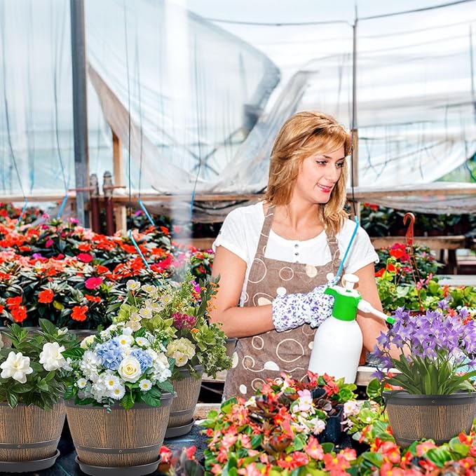 - 【Decorative Planters】Plastic pots for plants are perfect for indoor outdoor---decorating your windowsill, desktop, living room, kitchen, bedroom, bookshelf,balcony, garden, porch, patio and so on. These whiskey barrel indoor planters are a must-have for plant lovers. Give your plants a stylish home while bringing your green dreams to life!
