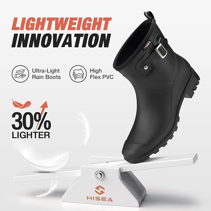 - Lightweight & All-Day Comfort: 30% lighter than traditional rain boots (only 401g per boot!) with breathable polyester lining to prevent sweat. The 4mm removable cushioned insole provides arch support and shock absorption—ideal for walking, standing all day, or outdoor adventures.