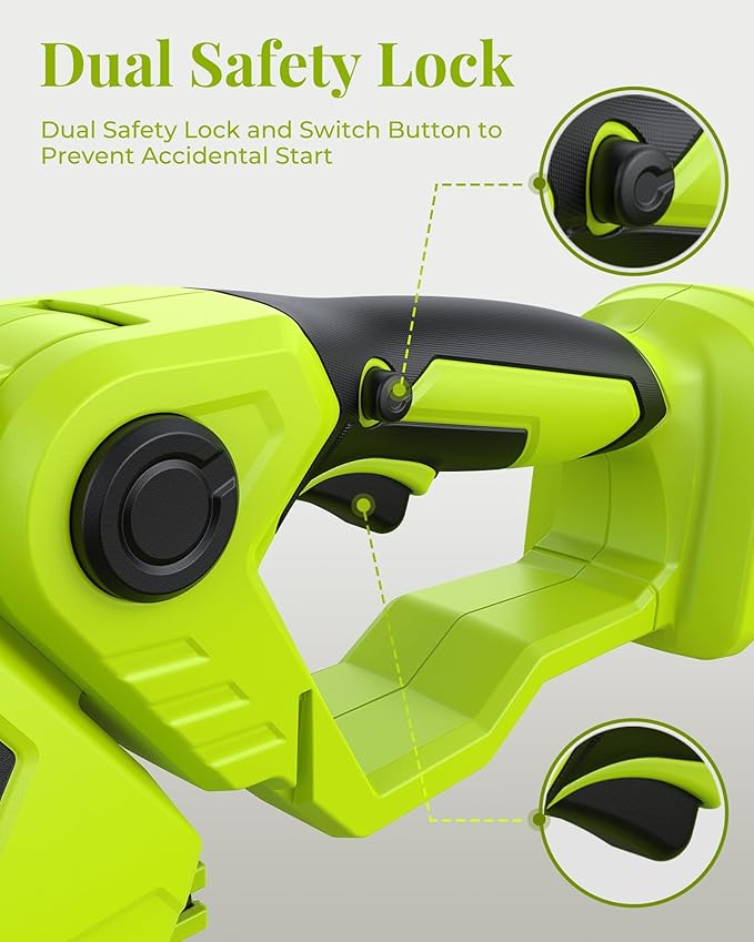 - Multiple Safety Protections: 1. safety lock to prevent accidental activation; 2. on/off switch to start the machine; 3. non-slip handle helps you to get a firm grip on the hedge trimmer