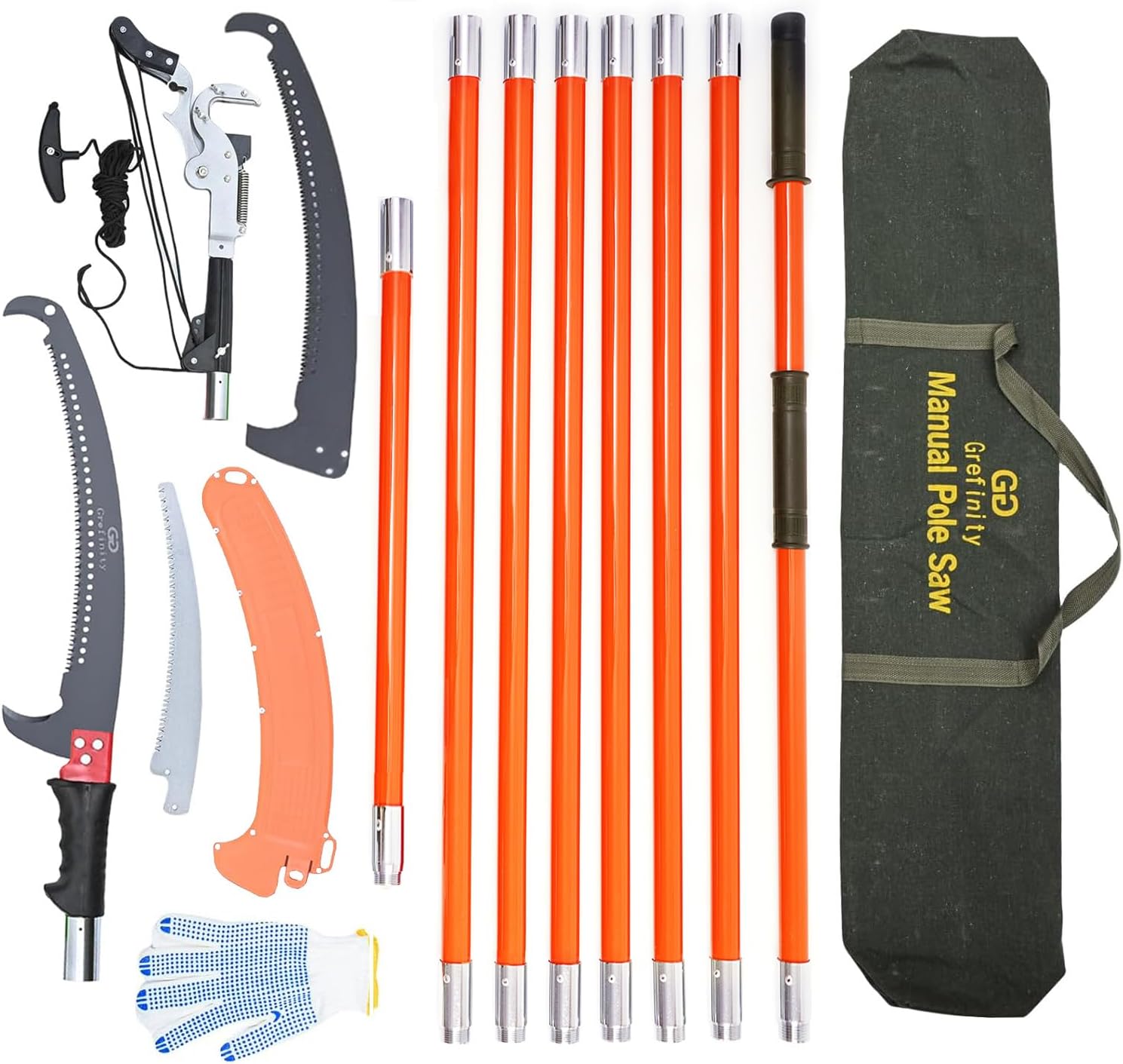 - Convenient Storage and Portability: Our pole saw set comes with a canvas storage bag for easy organization and portability. Whether you’re heading out to trim branches or shrubs, simply pack the set into the bag for your next task. The durable canvas bag ensures all tools are securely stored and easily accessible.