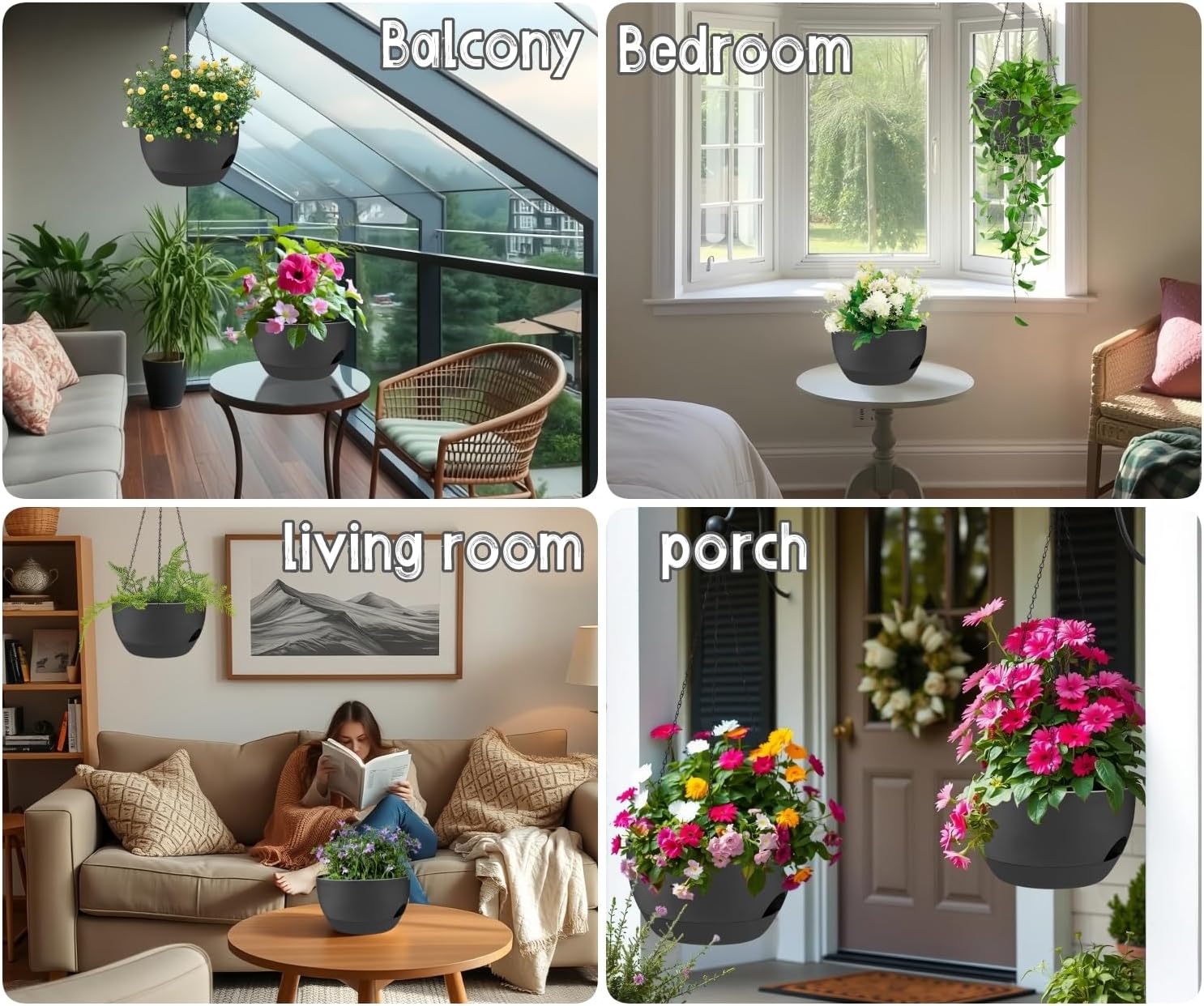 - ✅ 2 Large Self-Watering Planters: Double the value! Includes two 12-inch wide plastic hanging planters with built-in self-watering reservoirs to reduce the need for frequent watering and keep plants healthier.