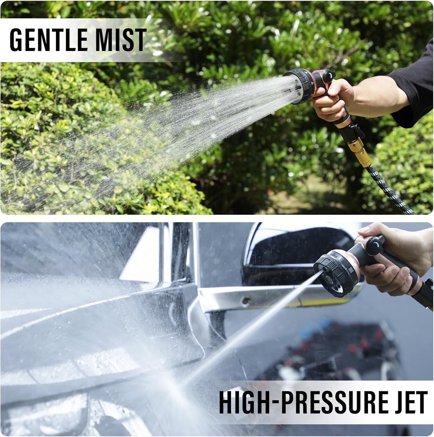 Heavy Duty Garden Hose Nozzle, 100% Metal Water Hose Sprayer with 8 Spray Patterns, High Pressure Hose Nozzle with Thumb Control, On Off Valve, for Lawn & Plant Watering, Car & Pet Washing
