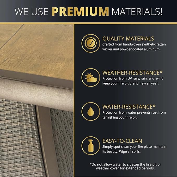 - 【Premium 42" Propane Fire Pit Table】Elevate your patio with this spacious 42-inch outdoor fire pit centerpiece. Crafted from handwoven synthetic rattan wicker & powder-coated aluminum frame for lasting style and weather/rust/fade resistance