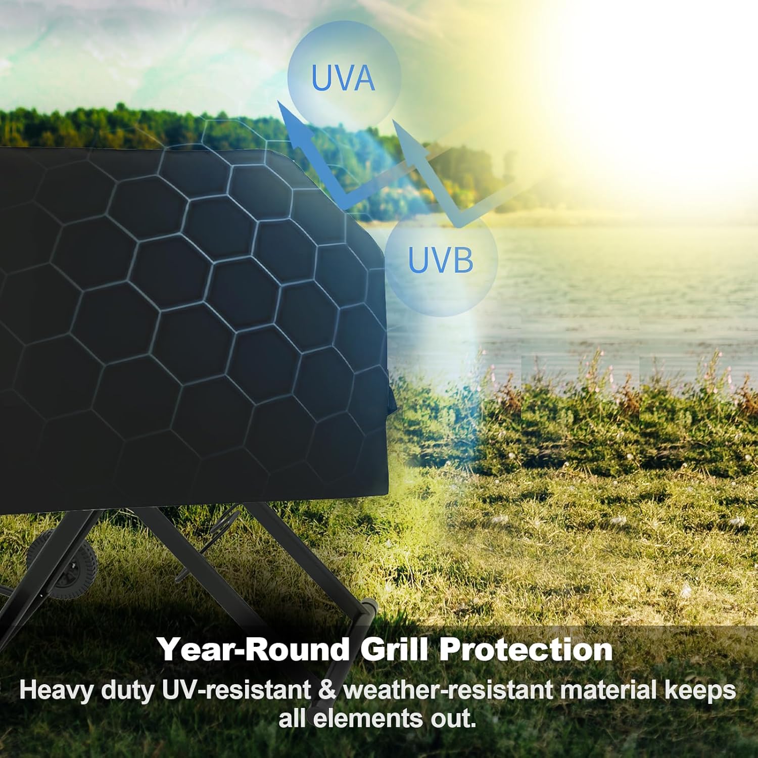 - Material: The grill cover for Napoleon is made of special fade-resistant fabric, heavy-duty polyester, and waterproof polyurethane coating inside, exhibiting superior colorfastness. Protect your grill from heavy rain, hot sun, dust, high wind, and all elements