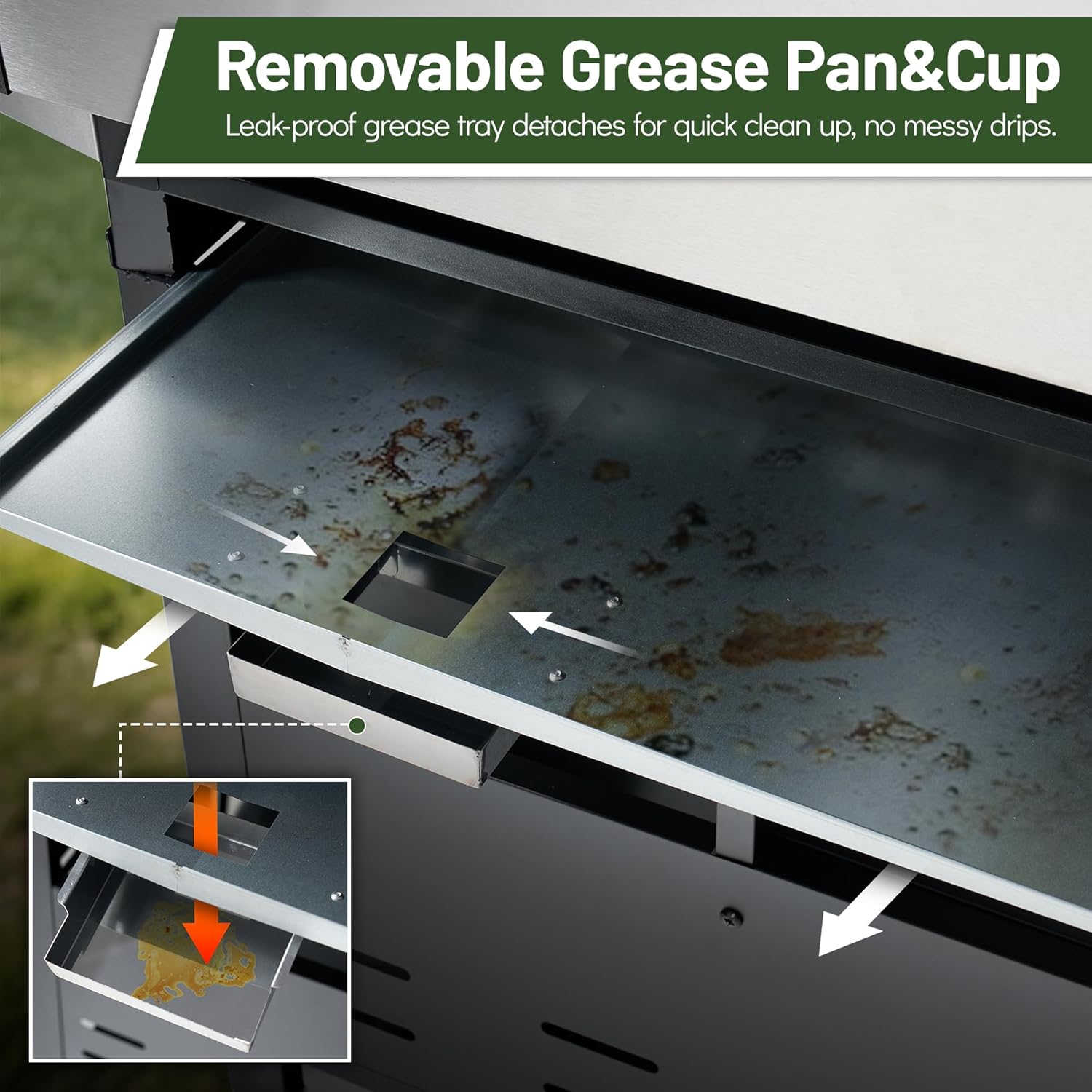 - THOUGHTFUL FEATURE DESIGN: This heavy-duty camping grill is meticulously designed, with a hook on the right side to securely hang a 20-pound propane tank and a stainless steel towel rack on the left for convenient cleaning. The new galvanized pull-out grease tray and grease collection pan combine practicality and convenience, making every grilling session enjoyable. Four swivel casters with brakes ensure smooth and easy movement