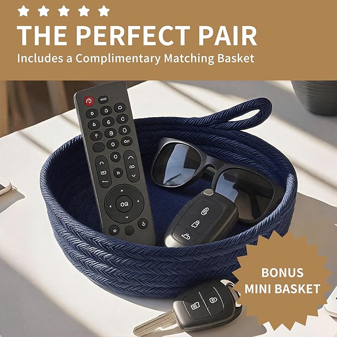 - Safe and Durable Storage Basket: Made up of cotton,soft material without any chemicals woven basket.Our basket is soft and safe for kids and pets.our rope baskets are super durable and hold their shape well.They can be hand washed / air dried or put in your washer / dryer on delicate