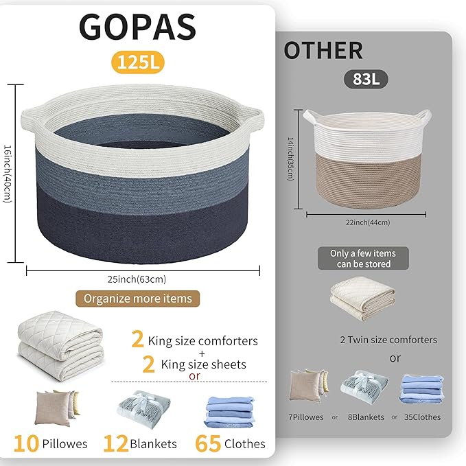 - 2 Extra large Size Multi-Purpose Blankets Basket: 25" x 16", Our Large woven rope basket for storage originally designed as a Blanket storage basket but can be used for more. You can use it as large laundry basket, large storage basket, toy basket for kids, baby toy storage basket bin.Keep in the kids room, family room, or any room in the house that could use extra storage