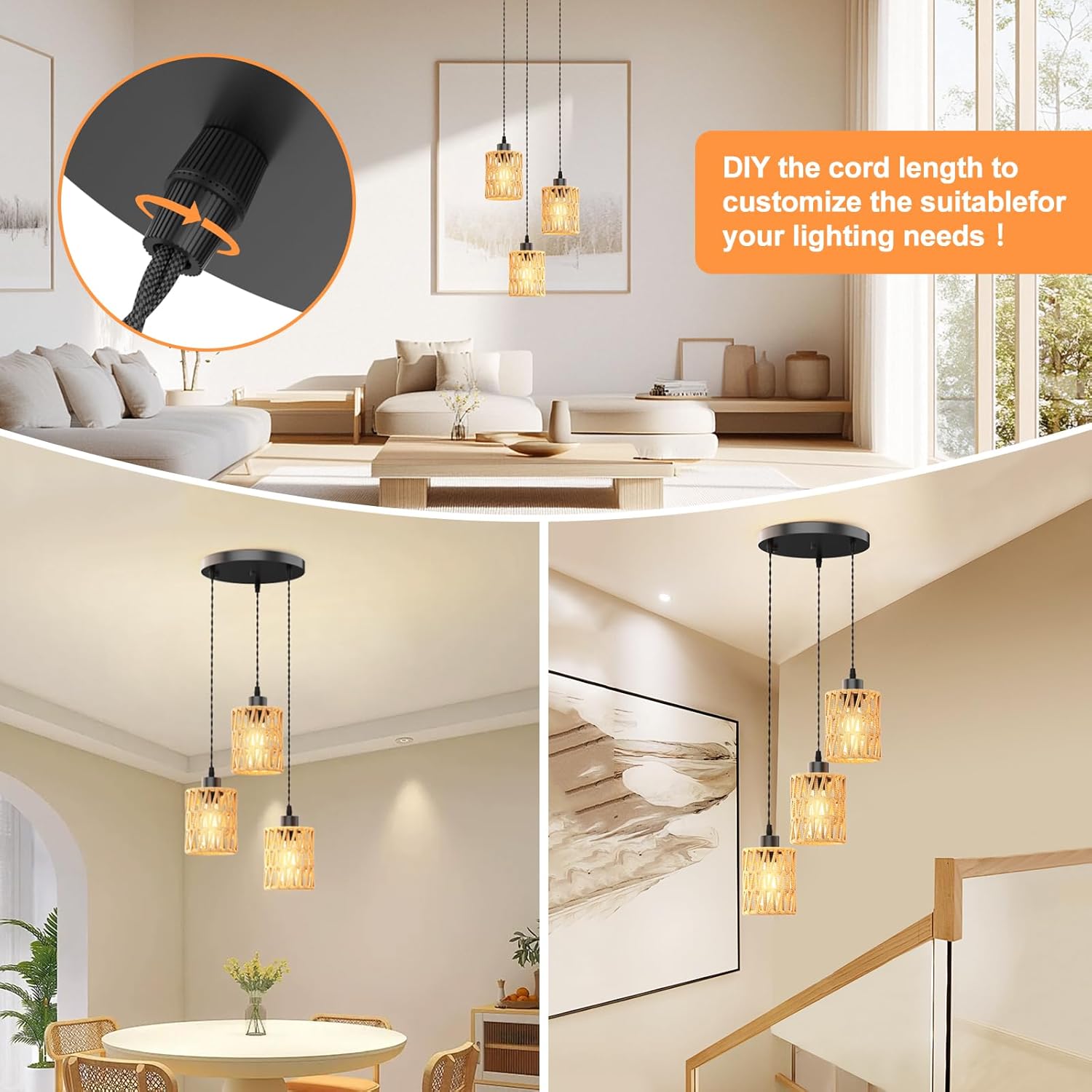 - ✨ 【Hand-Woven Rattan Shade & Boho Style】This farmhouse pendant light features a 100% hand-woven natural rattan shade,offering a durable,eco-friendly,and stable design.The boho pendant light effortlessly complements farmhouse,bohemian,vintage,and industrial decor,adding natural warmth to any space.When lit,the woven rattan shade casts stunning shadow patterns,creating a cozy ambiance in your kitchen island,dining room,or bedroom.