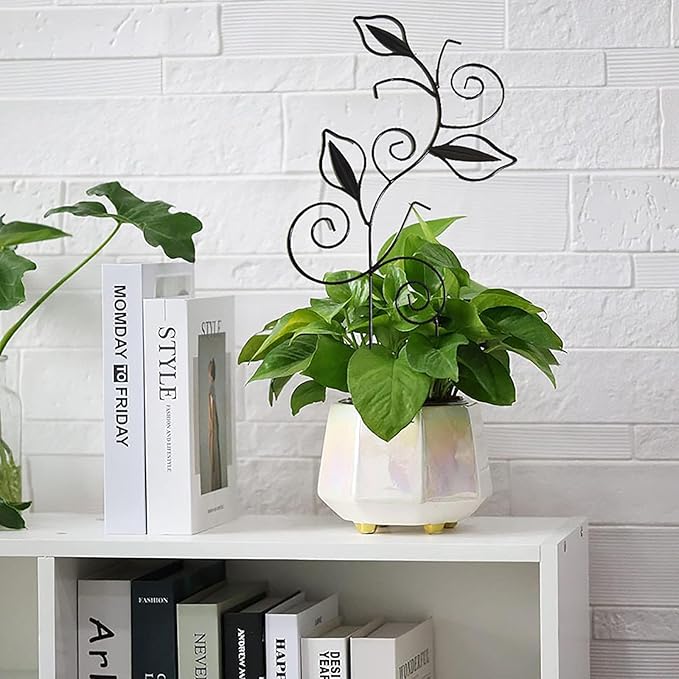 - 🌿【Leaf plant trellis 】Crafted in a graceful leaf shape, this decorative metal trellis not only supports your climbing plants but also adds a modern botanical charm to your indoor garden, balcony, or tabletop.