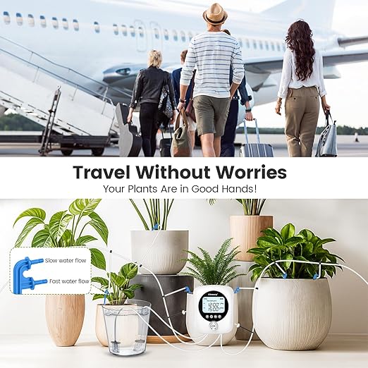 - Customizable Watering Schedules: This vacation plant watering device comes with timer that allow you to set specific watering schedules; you can program the system to water your plants at the optimal times, even when you're not around