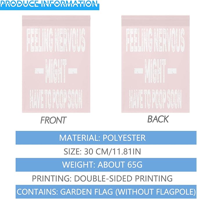 Feelingss Nervous Might Have To Poop Soon Funny Saying Quotes Seasonal Garden Flag 12x18 Double Sided Novelty Decorative Banner for Home Garden Patio and Yard