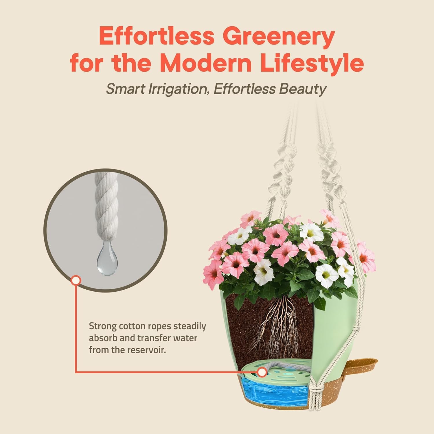 - WORRY-FREE WATERING – These hanging planters for indoor plants feature a built-in deep reservoir & an automatic watering rope system that keep your plants hydrated without daily support. They always get the right moisture—even they sway above the ground.
