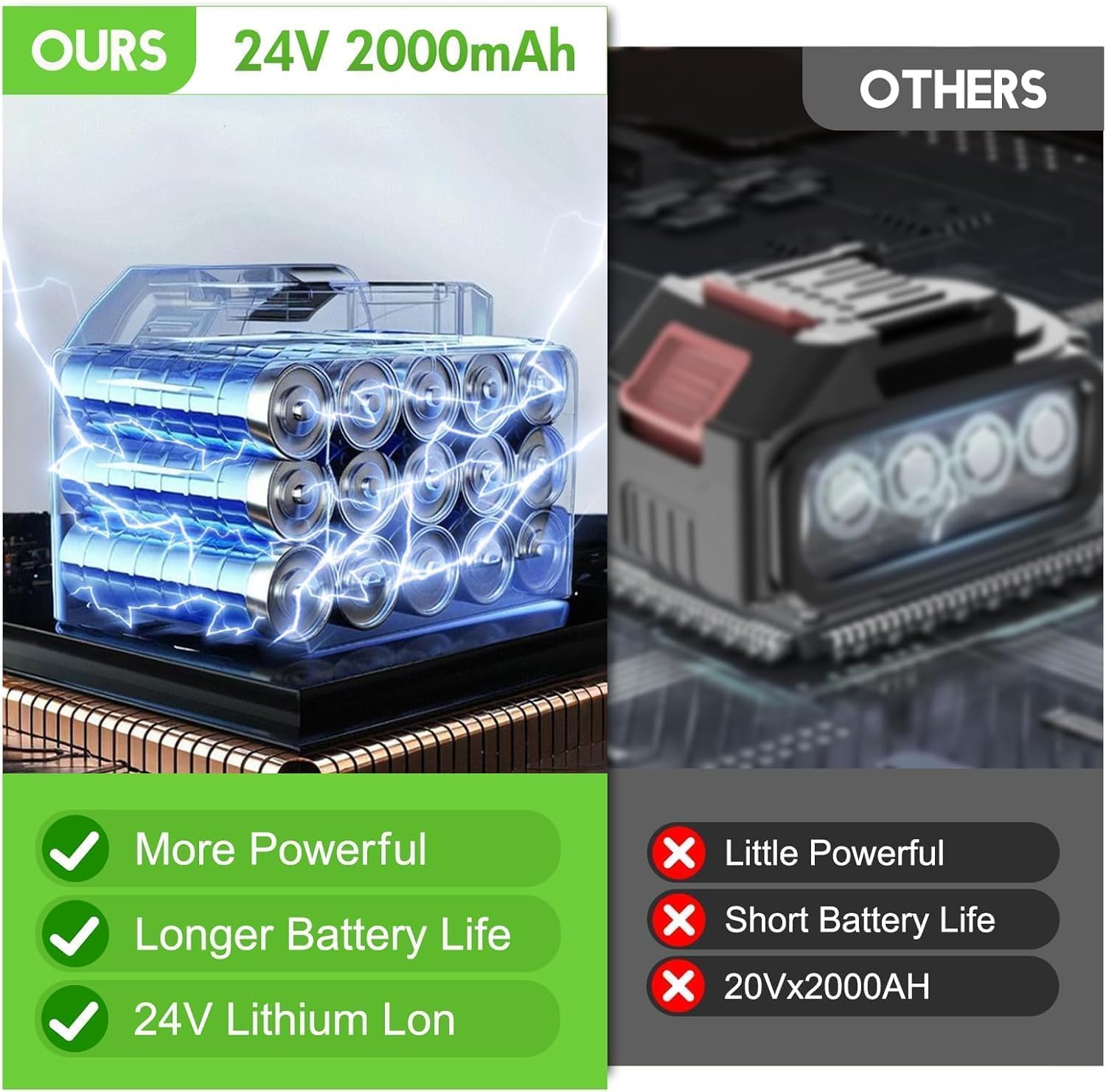 - Powerful & Long-Lasting Performance: Equipped with a 650W motor and 24V 2000mAh rechargeable battery. Includes 2 batteries & 1 charger for extended runtime. Remember to pause every 30-45 minutes for a 15-minute cool-down period to extend motor life.