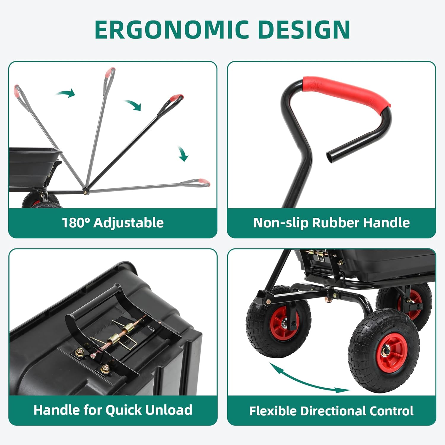 600lbs Garden Dump Cart, 4 Cu.Ft Heavy Duty Wagon Cart with 10" All Terrain Wheels, Steel Frame & Quick Release, Utility Wagon Carts for Yard, Farm and Garden(Black)