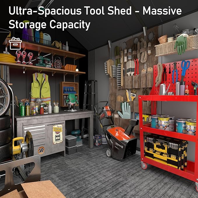- Spacious 8x10 FT Outdoor Storage Solution: Designed to hold everything from lawn mowers and garden tools to bikes, pool supplies, and trash bins—ideal for organizing your outdoor essentials in one secure place.