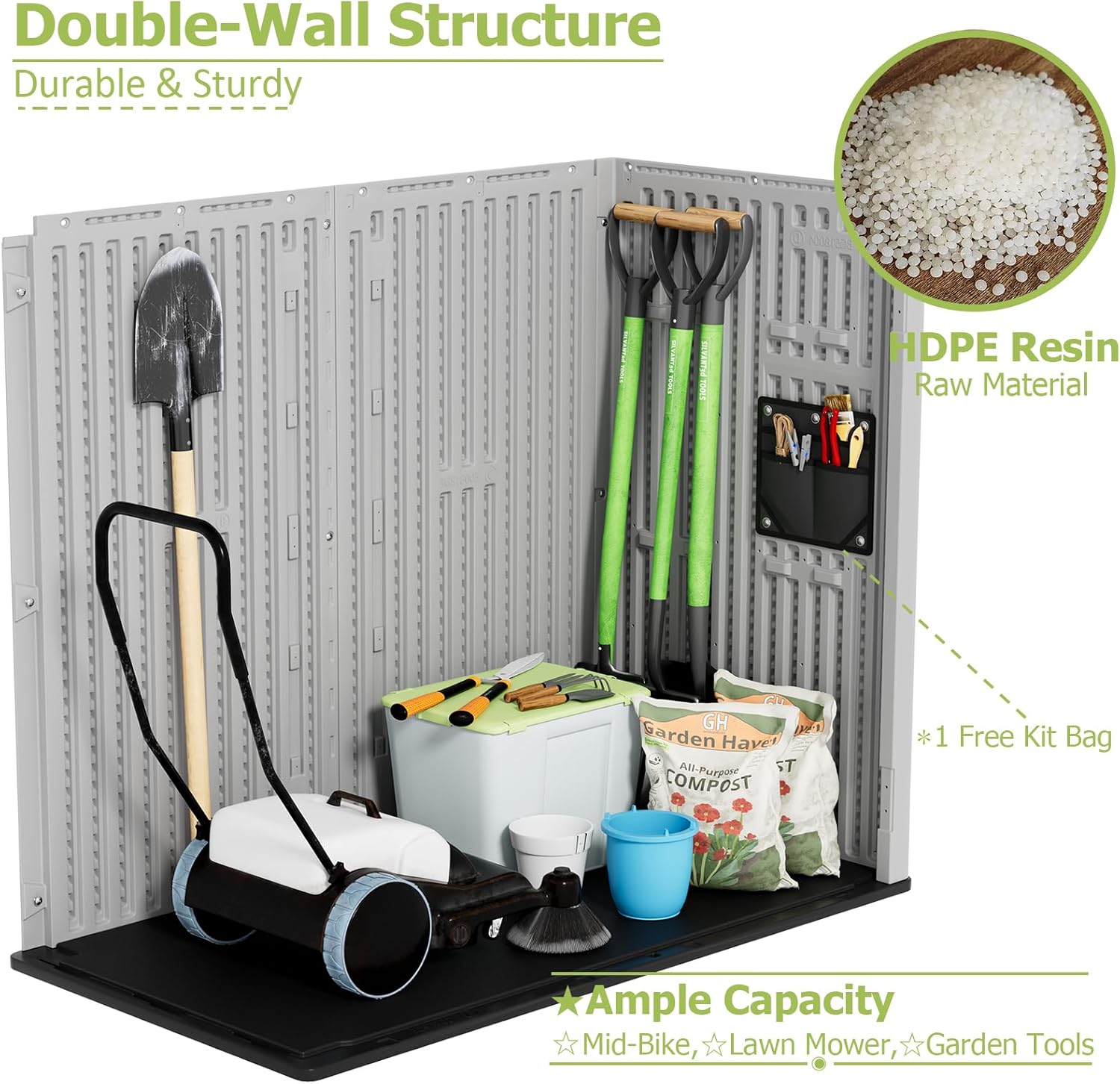 - 【Multi-purpose Storage】 Perfect for storing garden tools, Mid-bike, BBQ grills, firewood, seat cushions, lawn mower, patio & garden accessories and more.