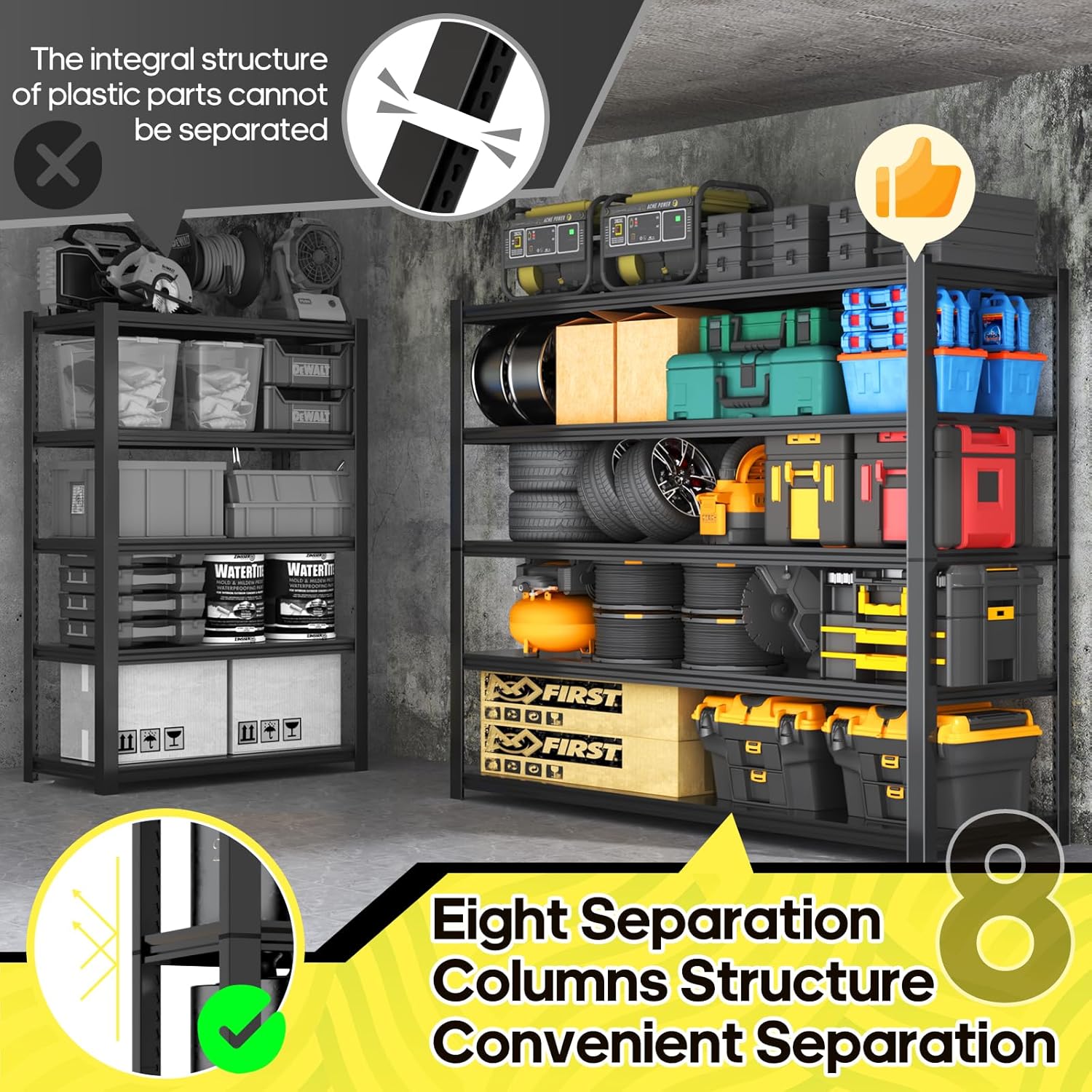 - 【3000 lbs Weight Capacity】 Each tier holds up to 600 lbs, total 3000 lbs capacity, making it ideal for garage storage shelf heavy duty needs. Great choice for metal storage shelves, industrial shelving, and 59.8inch wide shelving units for long-term heavy duty use.