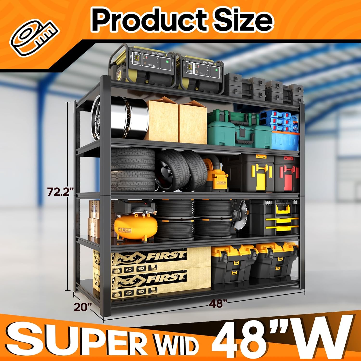 - 【Adjustable 5-Tier Metal Shelves】 Customize your storage by adjusting each shelf height to fit large bins, totes, or power tools. Ideal for garage organizers and storage, storage racks and shelving, tote storage racks, and long garage shelving setups.